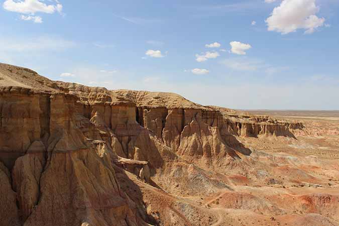 • Tsagaan Suvarga means “White Stupa.” It is one of the most famous highlights in the Gobi. Tsagaan Suvarga is a strange natural formation of colorful, massive mud cliffs that look like stupas, mound-like structures containing relics. Hiking through the cliffs offers the chance to take amazing photographs.